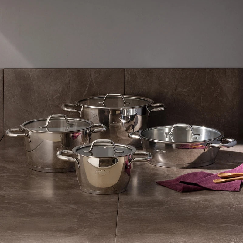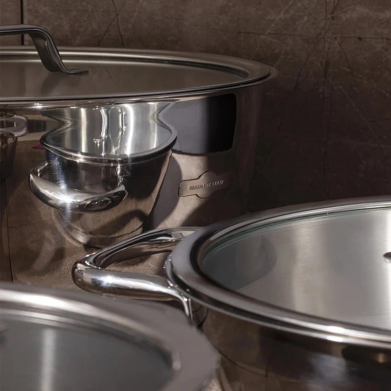 تمیزی راحت مقرون بصرفه، نگهداری و استفاده آسان، بهمراه ظاهری شیک و لوکس از مزایای ظروف استیل مادام کوکو میباشد